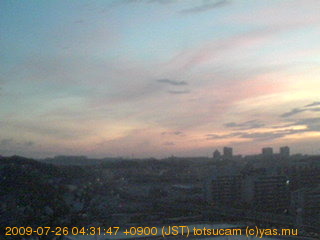 横浜市戸塚駅周辺から 東戸塚方面(北北東)を望む展望カメラの映像です。 左は現在の映像です。 下に並んでいるのは、 7日間に亘る日の出どき、昼間、夕暮れどきの写真(サムネイル)です。 それぞれ、日の出15分前、南中時、日没20分後の写真となっています。 各写真の下にはmpeg形式の動画へのリンクがあります。 それぞれ、日の出、南中、日没の前後1時間の画像です。 右欄にはその日24時間の動画へのリンクがあります。 この7日間以外は日付が一覧表示されています。 日付部分をクリックすると、 その日付から7日分が展開されて表示されます。