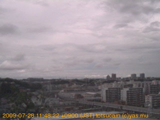適度に曇った日の雲の動き (例: 2005-10-24) がとても楽しめます。 正面を横切っている高架は横須賀線下りです。 その下に横須賀線上り、東海道線、同貨物線が走っていますが、 高架に隠れていてよく見えません。 夜間は特に中央左寄りの車の動きがよく見えます。