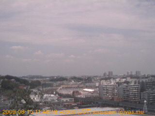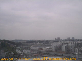 適度に曇った日の雲の動き (例: 2005-10-24) がとても楽しめます。 正面を横切っている高架は横須賀線下りです。 その下に横須賀線上り、東海道線、同貨物線が走っていますが、 高架に隠れていてよく見えません。 夜間は特に中央左寄りの車の動きがよく見えます。
