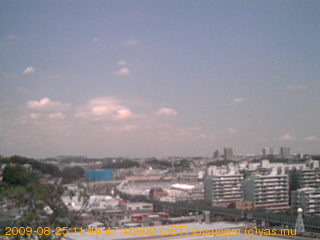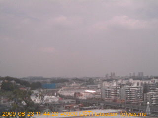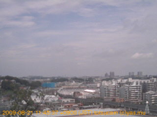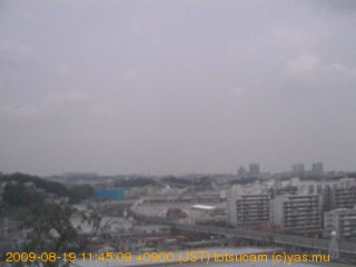 適度に曇った日の雲の動き (例: 2005-10-24) がとても楽しめます。 正面を横切っている高架は横須賀線下りです。 その下に横須賀線上り、東海道線、同貨物線が走っていますが、 高架に隠れていてよく見えません。 夜間は特に中央左寄りの車の動きがよく見えます。