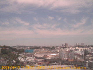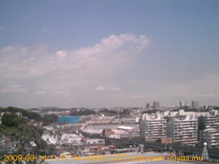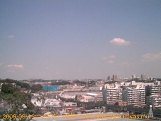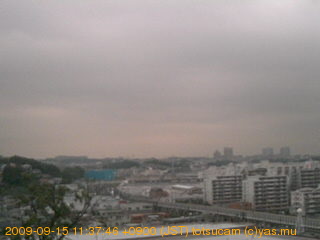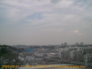 適度に曇った日の雲の動き (例: 2005-10-24) がとても楽しめます。 正面を横切っている高架は横須賀線下りです。 その下に横須賀線上り、東海道線、同貨物線が走っていますが、 高架に隠れていてよく見えません。 夜間は特に中央左寄りの車の動きがよく見えます。