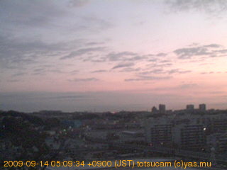 横浜市戸塚駅周辺から 東戸塚方面(北北東)を望む展望カメラの映像です。 左は現在の映像です。 下に並んでいるのは、 7日間に亘る日の出どき、昼間、夕暮れどきの写真(サムネイル)です。 それぞれ、日の出15分前、南中時、日没20分後の写真となっています。 各写真の下にはmpeg形式の動画へのリンクがあります。 それぞれ、日の出、南中、日没の前後1時間の画像です。 右欄にはその日24時間の動画へのリンクがあります。 この7日間以外は日付が一覧表示されています。 日付部分をクリックすると、 その日付から7日分が展開されて表示されます。