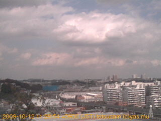 適度に曇った日の雲の動き (例: 2005-10-24) がとても楽しめます。 正面を横切っている高架は横須賀線下りです。 その下に横須賀線上り、東海道線、同貨物線が走っていますが、 高架に隠れていてよく見えません。 夜間は特に中央左寄りの車の動きがよく見えます。