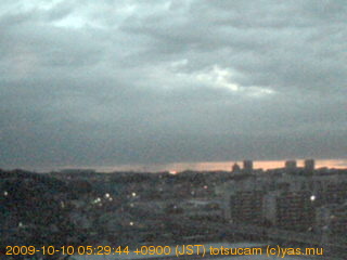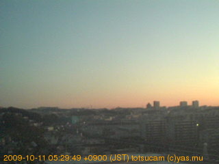 横浜市戸塚駅周辺から 東戸塚方面(北北東)を望む展望カメラの映像です。 左は現在の映像です。 下に並んでいるのは、 7日間に亘る日の出どき、昼間、夕暮れどきの写真(サムネイル)です。 それぞれ、日の出15分前、南中時、日没20分後の写真となっています。 各写真の下にはmpeg形式の動画へのリンクがあります。 それぞれ、日の出、南中、日没の前後1時間の画像です。 右欄にはその日24時間の動画へのリンクがあります。 この7日間以外は日付が一覧表示されています。 日付部分をクリックすると、 その日付から7日分が展開されて表示されます。