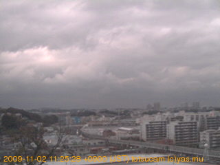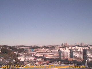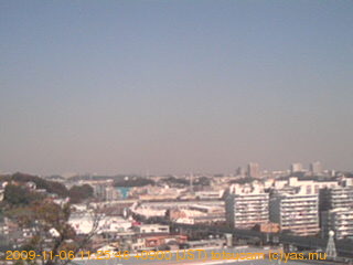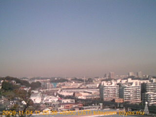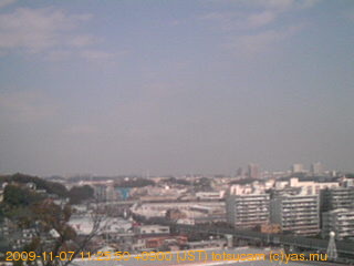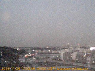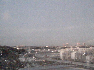 適度に曇った日の雲の動き (例: 2005-10-24) がとても楽しめます。 正面を横切っている高架は横須賀線下りです。 その下に横須賀線上り、東海道線、同貨物線が走っていますが、 高架に隠れていてよく見えません。 夜間は特に中央左寄りの車の動きがよく見えます。
