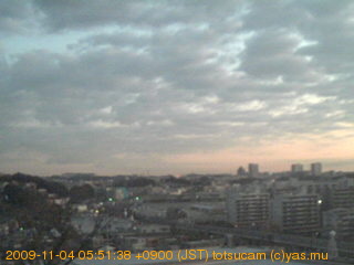 横浜市戸塚駅周辺から 東戸塚方面(北北東)を望む展望カメラの映像です。 左は現在の映像です。 下に並んでいるのは、 7日間に亘る日の出どき、昼間、夕暮れどきの写真(サムネイル)です。 それぞれ、日の出15分前、南中時、日没20分後の写真となっています。 各写真の下にはmpeg形式の動画へのリンクがあります。 それぞれ、日の出、南中、日没の前後1時間の画像です。 右欄にはその日24時間の動画へのリンクがあります。 この7日間以外は日付が一覧表示されています。 日付部分をクリックすると、 その日付から7日分が展開されて表示されます。