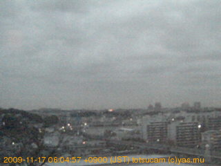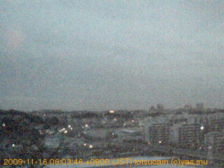 横浜市戸塚駅周辺から 東戸塚方面(北北東)を望む展望カメラの映像です。 左は現在の映像です。 下に並んでいるのは、 7日間に亘る日の出どき、昼間、夕暮れどきの写真(サムネイル)です。 それぞれ、日の出15分前、南中時、日没20分後の写真となっています。 各写真の下にはmpeg形式の動画へのリンクがあります。 それぞれ、日の出、南中、日没の前後1時間の画像です。 右欄にはその日24時間の動画へのリンクがあります。 この7日間以外は日付が一覧表示されています。 日付部分をクリックすると、 その日付から7日分が展開されて表示されます。