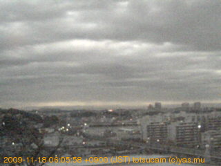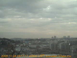 横浜市戸塚駅周辺から 東戸塚方面(北北東)を望む展望カメラの映像です。 左は現在の映像です。 下に並んでいるのは、 7日間に亘る日の出どき、昼間、夕暮れどきの写真(サムネイル)です。 それぞれ、日の出15分前、南中時、日没20分後の写真となっています。 各写真の下にはmpeg形式の動画へのリンクがあります。 それぞれ、日の出、南中、日没の前後1時間の画像です。 右欄にはその日24時間の動画へのリンクがあります。 この7日間以外は日付が一覧表示されています。 日付部分をクリックすると、 その日付から7日分が展開されて表示されます。
