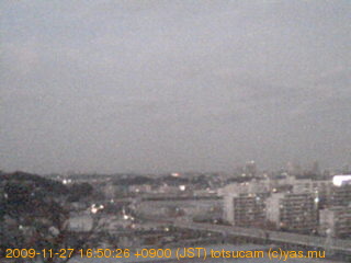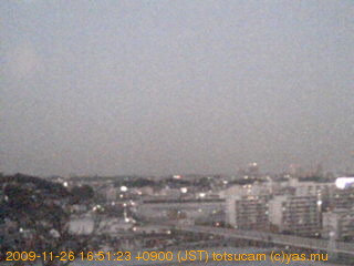 適度に曇った日の雲の動き (例: 2005-10-24) がとても楽しめます。 正面を横切っている高架は横須賀線下りです。 その下に横須賀線上り、東海道線、同貨物線が走っていますが、 高架に隠れていてよく見えません。 夜間は特に中央左寄りの車の動きがよく見えます。