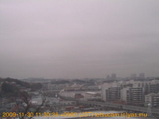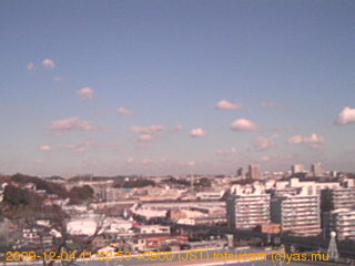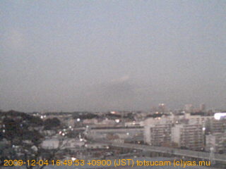 適度に曇った日の雲の動き (例: 2005-10-24) がとても楽しめます。 正面を横切っている高架は横須賀線下りです。 その下に横須賀線上り、東海道線、同貨物線が走っていますが、 高架に隠れていてよく見えません。 夜間は特に中央左寄りの車の動きがよく見えます。