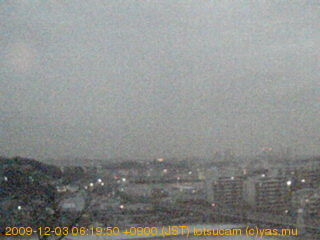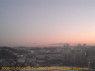 横浜市戸塚駅周辺から 東戸塚方面(北北東)を望む展望カメラの映像です。 左は現在の映像です。 下に並んでいるのは、 7日間に亘る日の出どき、昼間、夕暮れどきの写真(サムネイル)です。 それぞれ、日の出15分前、南中時、日没20分後の写真となっています。 各写真の下にはmpeg形式の動画へのリンクがあります。 それぞれ、日の出、南中、日没の前後1時間の画像です。 右欄にはその日24時間の動画へのリンクがあります。 この7日間以外は日付が一覧表示されています。 日付部分をクリックすると、 その日付から7日分が展開されて表示されます。