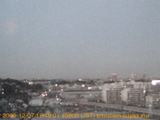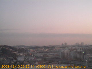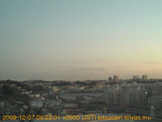 横浜市戸塚駅周辺から 東戸塚方面(北北東)を望む展望カメラの映像です。 左は現在の映像です。 下に並んでいるのは、 7日間に亘る日の出どき、昼間、夕暮れどきの写真(サムネイル)です。 それぞれ、日の出15分前、南中時、日没20分後の写真となっています。 各写真の下にはmpeg形式の動画へのリンクがあります。 それぞれ、日の出、南中、日没の前後1時間の画像です。 右欄にはその日24時間の動画へのリンクがあります。 この7日間以外は日付が一覧表示されています。 日付部分をクリックすると、 その日付から7日分が展開されて表示されます。
