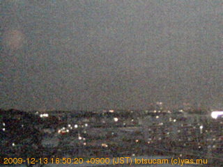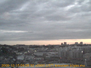 横浜市戸塚駅周辺から 東戸塚方面(北北東)を望む展望カメラの映像です。 左は現在の映像です。 下に並んでいるのは、 7日間に亘る日の出どき、昼間、夕暮れどきの写真(サムネイル)です。 それぞれ、日の出15分前、南中時、日没20分後の写真となっています。 各写真の下にはmpeg形式の動画へのリンクがあります。 それぞれ、日の出、南中、日没の前後1時間の画像です。 右欄にはその日24時間の動画へのリンクがあります。 この7日間以外は日付が一覧表示されています。 日付部分をクリックすると、 その日付から7日分が展開されて表示されます。