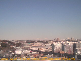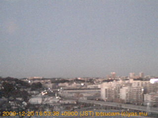 適度に曇った日の雲の動き (例: 2005-10-24) がとても楽しめます。 正面を横切っている高架は横須賀線下りです。 その下に横須賀線上り、東海道線、同貨物線が走っていますが、 高架に隠れていてよく見えません。 夜間は特に中央左寄りの車の動きがよく見えます。