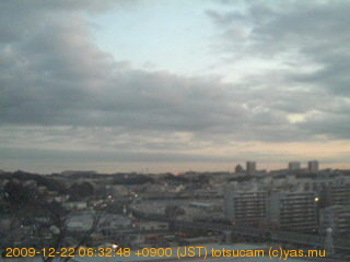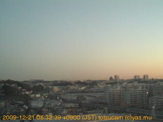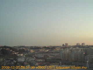 横浜市戸塚駅周辺から 東戸塚方面(北北東)を望む展望カメラの映像です。 左は現在の映像です。 下に並んでいるのは、 7日間に亘る日の出どき、昼間、夕暮れどきの写真(サムネイル)です。 それぞれ、日の出15分前、南中時、日没20分後の写真となっています。 各写真の下にはmpeg形式の動画へのリンクがあります。 それぞれ、日の出、南中、日没の前後1時間の画像です。 右欄にはその日24時間の動画へのリンクがあります。 この7日間以外は日付が一覧表示されています。 日付部分をクリックすると、 その日付から7日分が展開されて表示されます。