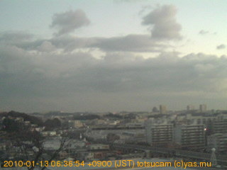 横浜市戸塚駅周辺から 東戸塚方面(北北東)を望む展望カメラの映像です。 左は現在の映像です。 下に並んでいるのは、 7日間に亘る日の出どき、昼間、夕暮れどきの写真(サムネイル)です。 それぞれ、日の出15分前、南中時、日没20分後の写真となっています。 各写真の下にはmpeg形式の動画へのリンクがあります。 それぞれ、日の出、南中、日没の前後1時間の画像です。 右欄にはその日24時間の動画へのリンクがあります。 この7日間以外は日付が一覧表示されています。 日付部分をクリックすると、 その日付から7日分が展開されて表示されます。