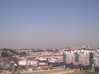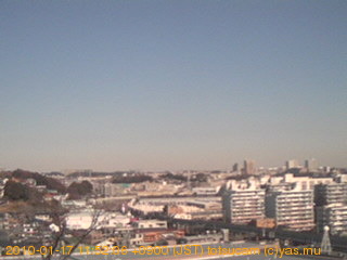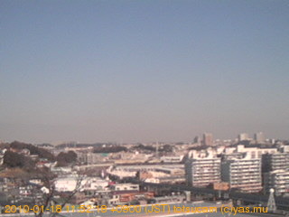適度に曇った日の雲の動き (例: 2005-10-24) がとても楽しめます。 正面を横切っている高架は横須賀線下りです。 その下に横須賀線上り、東海道線、同貨物線が走っていますが、 高架に隠れていてよく見えません。 夜間は特に中央左寄りの車の動きがよく見えます。