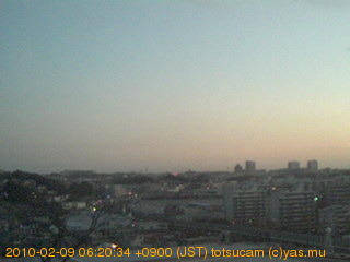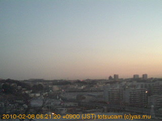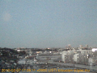 横浜市戸塚駅周辺から 東戸塚方面(北北東)を望む展望カメラの映像です。 左は現在の映像です。 下に並んでいるのは、 7日間に亘る日の出どき、昼間、夕暮れどきの写真(サムネイル)です。 それぞれ、日の出15分前、南中時、日没20分後の写真となっています。 各写真の下にはmpeg形式の動画へのリンクがあります。 それぞれ、日の出、南中、日没の前後1時間の画像です。 右欄にはその日24時間の動画へのリンクがあります。 この7日間以外は日付が一覧表示されています。 日付部分をクリックすると、 その日付から7日分が展開されて表示されます。