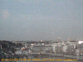 適度に曇った日の雲の動き (例: 2005-10-24) がとても楽しめます。 正面を横切っている高架は横須賀線下りです。 その下に横須賀線上り、東海道線、同貨物線が走っていますが、 高架に隠れていてよく見えません。 夜間は特に中央左寄りの車の動きがよく見えます。