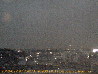 適度に曇った日の雲の動き (例: 2005-10-24) がとても楽しめます。 正面を横切っている高架は横須賀線下りです。 その下に横須賀線上り、東海道線、同貨物線が走っていますが、 高架に隠れていてよく見えません。 夜間は特に中央左寄りの車の動きがよく見えます。