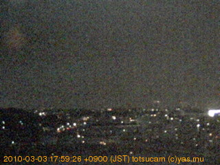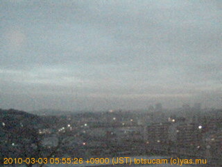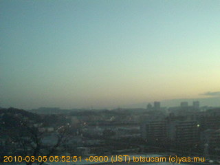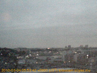 横浜市戸塚駅周辺から 東戸塚方面(北北東)を望む展望カメラの映像です。 左は現在の映像です。 下に並んでいるのは、 7日間に亘る日の出どき、昼間、夕暮れどきの写真(サムネイル)です。 それぞれ、日の出15分前、南中時、日没20分後の写真となっています。 各写真の下にはmpeg形式の動画へのリンクがあります。 それぞれ、日の出、南中、日没の前後1時間の画像です。 右欄にはその日24時間の動画へのリンクがあります。 この7日間以外は日付が一覧表示されています。 日付部分をクリックすると、 その日付から7日分が展開されて表示されます。