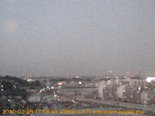 適度に曇った日の雲の動き (例: 2005-10-24) がとても楽しめます。 正面を横切っている高架は横須賀線下りです。 その下に横須賀線上り、東海道線、同貨物線が走っていますが、 高架に隠れていてよく見えません。 夜間は特に中央左寄りの車の動きがよく見えます。