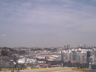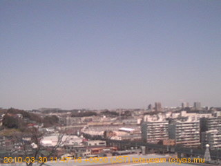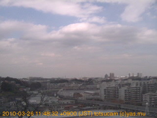 適度に曇った日の雲の動き (例: 2005-10-24) がとても楽しめます。 正面を横切っている高架は横須賀線下りです。 その下に横須賀線上り、東海道線、同貨物線が走っていますが、 高架に隠れていてよく見えません。 夜間は特に中央左寄りの車の動きがよく見えます。