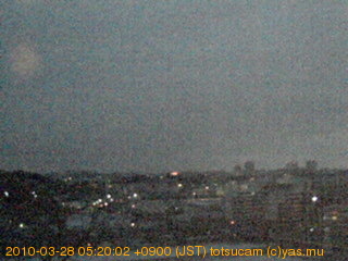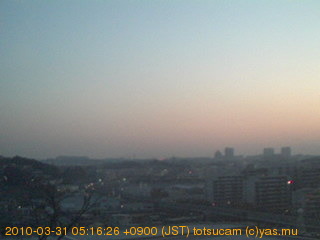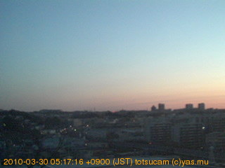 横浜市戸塚駅周辺から 東戸塚方面(北北東)を望む展望カメラの映像です。 左は現在の映像です。 下に並んでいるのは、 7日間に亘る日の出どき、昼間、夕暮れどきの写真(サムネイル)です。 それぞれ、日の出15分前、南中時、日没20分後の写真となっています。 各写真の下にはmpeg形式の動画へのリンクがあります。 それぞれ、日の出、南中、日没の前後1時間の画像です。 右欄にはその日24時間の動画へのリンクがあります。 この7日間以外は日付が一覧表示されています。 日付部分をクリックすると、 その日付から7日分が展開されて表示されます。