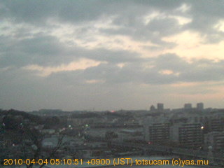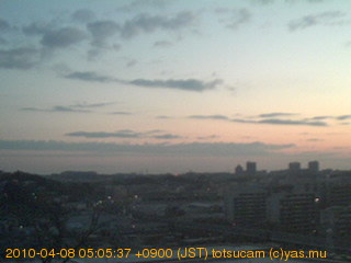 横浜市戸塚駅周辺から 東戸塚方面(北北東)を望む展望カメラの映像です。 左は現在の映像です。 下に並んでいるのは、 7日間に亘る日の出どき、昼間、夕暮れどきの写真(サムネイル)です。 それぞれ、日の出15分前、南中時、日没20分後の写真となっています。 各写真の下にはmpeg形式の動画へのリンクがあります。 それぞれ、日の出、南中、日没の前後1時間の画像です。 右欄にはその日24時間の動画へのリンクがあります。 この7日間以外は日付が一覧表示されています。 日付部分をクリックすると、 その日付から7日分が展開されて表示されます。