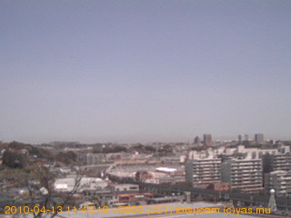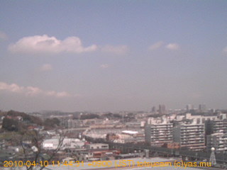 適度に曇った日の雲の動き (例: 2005-10-24) がとても楽しめます。 正面を横切っている高架は横須賀線下りです。 その下に横須賀線上り、東海道線、同貨物線が走っていますが、 高架に隠れていてよく見えません。 夜間は特に中央左寄りの車の動きがよく見えます。