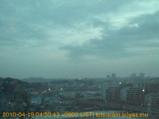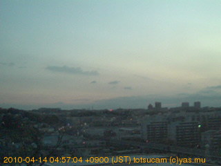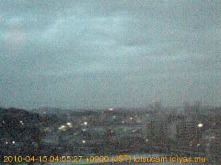 横浜市戸塚駅周辺から 東戸塚方面(北北東)を望む展望カメラの映像です。 左は現在の映像です。 下に並んでいるのは、 7日間に亘る日の出どき、昼間、夕暮れどきの写真(サムネイル)です。 それぞれ、日の出15分前、南中時、日没20分後の写真となっています。 各写真の下にはmpeg形式の動画へのリンクがあります。 それぞれ、日の出、南中、日没の前後1時間の画像です。 右欄にはその日24時間の動画へのリンクがあります。 この7日間以外は日付が一覧表示されています。 日付部分をクリックすると、 その日付から7日分が展開されて表示されます。