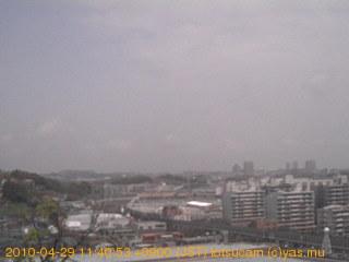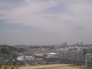 適度に曇った日の雲の動き (例: 2005-10-24) がとても楽しめます。 正面を横切っている高架は横須賀線下りです。 その下に横須賀線上り、東海道線、同貨物線が走っていますが、 高架に隠れていてよく見えません。 夜間は特に中央左寄りの車の動きがよく見えます。