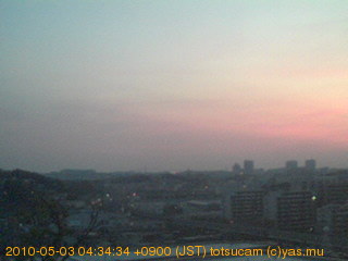 横浜市戸塚駅周辺から 東戸塚方面(北北東)を望む展望カメラの映像です。 左は現在の映像です。 下に並んでいるのは、 7日間に亘る日の出どき、昼間、夕暮れどきの写真(サムネイル)です。 それぞれ、日の出15分前、南中時、日没20分後の写真となっています。 各写真の下にはmpeg形式の動画へのリンクがあります。 それぞれ、日の出、南中、日没の前後1時間の画像です。 右欄にはその日24時間の動画へのリンクがあります。 この7日間以外は日付が一覧表示されています。 日付部分をクリックすると、 その日付から7日分が展開されて表示されます。