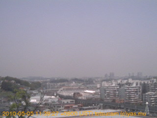 適度に曇った日の雲の動き (例: 2005-10-24) がとても楽しめます。 正面を横切っている高架は横須賀線下りです。 その下に横須賀線上り、東海道線、同貨物線が走っていますが、 高架に隠れていてよく見えません。 夜間は特に中央左寄りの車の動きがよく見えます。