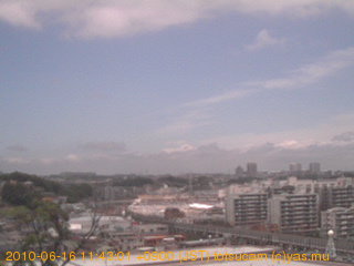 適度に曇った日の雲の動き (例: 2005-10-24) がとても楽しめます。 正面を横切っている高架は横須賀線下りです。 その下に横須賀線上り、東海道線、同貨物線が走っていますが、 高架に隠れていてよく見えません。 夜間は特に中央左寄りの車の動きがよく見えます。