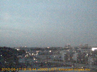 横浜市戸塚駅周辺から 東戸塚方面(北北東)を望む展望カメラの映像です。 左は現在の映像です。 下に並んでいるのは、 7日間に亘る日の出どき、昼間、夕暮れどきの写真(サムネイル)です。 それぞれ、日の出15分前、南中時、日没20分後の写真となっています。 各写真の下にはmpeg形式の動画へのリンクがあります。 それぞれ、日の出、南中、日没の前後1時間の画像です。 右欄にはその日24時間の動画へのリンクがあります。 この7日間以外は日付が一覧表示されています。 日付部分をクリックすると、 その日付から7日分が展開されて表示されます。