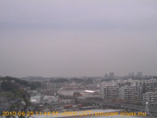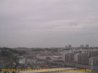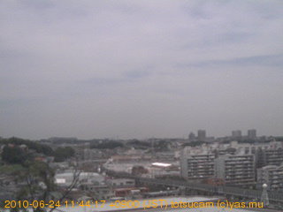 適度に曇った日の雲の動き (例: 2005-10-24) がとても楽しめます。 正面を横切っている高架は横須賀線下りです。 その下に横須賀線上り、東海道線、同貨物線が走っていますが、 高架に隠れていてよく見えません。 夜間は特に中央左寄りの車の動きがよく見えます。