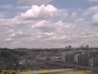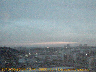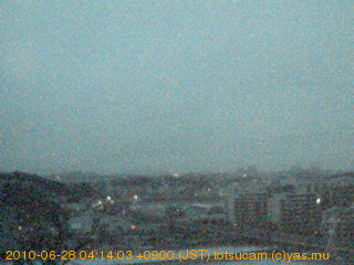 横浜市戸塚駅周辺から 東戸塚方面(北北東)を望む展望カメラの映像です。 左は現在の映像です。 下に並んでいるのは、 7日間に亘る日の出どき、昼間、夕暮れどきの写真(サムネイル)です。 それぞれ、日の出15分前、南中時、日没20分後の写真となっています。 各写真の下にはmpeg形式の動画へのリンクがあります。 それぞれ、日の出、南中、日没の前後1時間の画像です。 右欄にはその日24時間の動画へのリンクがあります。 この7日間以外は日付が一覧表示されています。 日付部分をクリックすると、 その日付から7日分が展開されて表示されます。