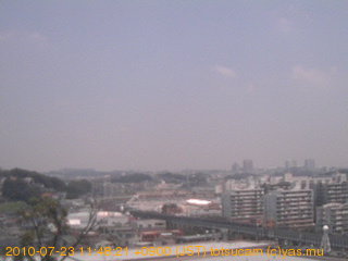 適度に曇った日の雲の動き (例: 2005-10-24) がとても楽しめます。 正面を横切っている高架は横須賀線下りです。 その下に横須賀線上り、東海道線、同貨物線が走っていますが、 高架に隠れていてよく見えません。 夜間は特に中央左寄りの車の動きがよく見えます。