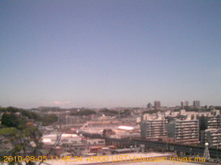 適度に曇った日の雲の動き (例: 2005-10-24) がとても楽しめます。 正面を横切っている高架は横須賀線下りです。 その下に横須賀線上り、東海道線、同貨物線が走っていますが、 高架に隠れていてよく見えません。 夜間は特に中央左寄りの車の動きがよく見えます。