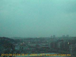 横浜市戸塚駅周辺から 東戸塚方面(北北東)を望む展望カメラの映像です。 左は現在の映像です。 下に並んでいるのは、 7日間に亘る日の出どき、昼間、夕暮れどきの写真(サムネイル)です。 それぞれ、日の出15分前、南中時、日没20分後の写真となっています。 各写真の下にはmpeg形式の動画へのリンクがあります。 それぞれ、日の出、南中、日没の前後1時間の画像です。 右欄にはその日24時間の動画へのリンクがあります。 この7日間以外は日付が一覧表示されています。 日付部分をクリックすると、 その日付から7日分が展開されて表示されます。