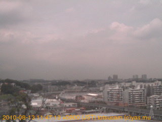 適度に曇った日の雲の動き (例: 2005-10-24) がとても楽しめます。 正面を横切っている高架は横須賀線下りです。 その下に横須賀線上り、東海道線、同貨物線が走っていますが、 高架に隠れていてよく見えません。 夜間は特に中央左寄りの車の動きがよく見えます。