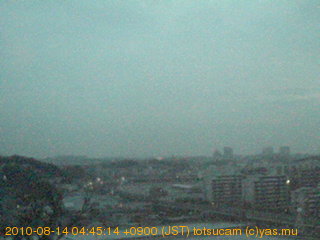 横浜市戸塚駅周辺から 東戸塚方面(北北東)を望む展望カメラの映像です。 左は現在の映像です。 下に並んでいるのは、 7日間に亘る日の出どき、昼間、夕暮れどきの写真(サムネイル)です。 それぞれ、日の出15分前、南中時、日没20分後の写真となっています。 各写真の下にはmpeg形式の動画へのリンクがあります。 それぞれ、日の出、南中、日没の前後1時間の画像です。 右欄にはその日24時間の動画へのリンクがあります。 この7日間以外は日付が一覧表示されています。 日付部分をクリックすると、 その日付から7日分が展開されて表示されます。
