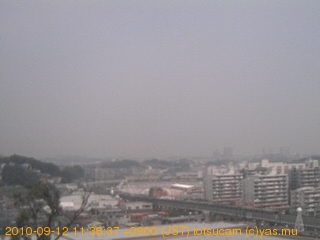 適度に曇った日の雲の動き (例: 2005-10-24) がとても楽しめます。 正面を横切っている高架は横須賀線下りです。 その下に横須賀線上り、東海道線、同貨物線が走っていますが、 高架に隠れていてよく見えません。 夜間は特に中央左寄りの車の動きがよく見えます。