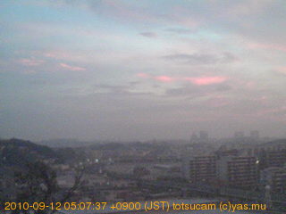 横浜市戸塚駅周辺から 東戸塚方面(北北東)を望む展望カメラの映像です。 左は現在の映像です。 下に並んでいるのは、 7日間に亘る日の出どき、昼間、夕暮れどきの写真(サムネイル)です。 それぞれ、日の出15分前、南中時、日没20分後の写真となっています。 各写真の下にはmpeg形式の動画へのリンクがあります。 それぞれ、日の出、南中、日没の前後1時間の画像です。 右欄にはその日24時間の動画へのリンクがあります。 この7日間以外は日付が一覧表示されています。 日付部分をクリックすると、 その日付から7日分が展開されて表示されます。