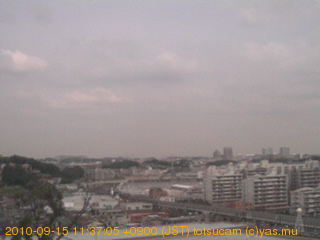 適度に曇った日の雲の動き (例: 2005-10-24) がとても楽しめます。 正面を横切っている高架は横須賀線下りです。 その下に横須賀線上り、東海道線、同貨物線が走っていますが、 高架に隠れていてよく見えません。 夜間は特に中央左寄りの車の動きがよく見えます。