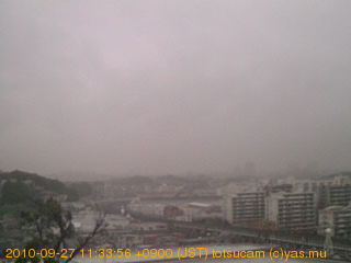 適度に曇った日の雲の動き (例: 2005-10-24) がとても楽しめます。 正面を横切っている高架は横須賀線下りです。 その下に横須賀線上り、東海道線、同貨物線が走っていますが、 高架に隠れていてよく見えません。 夜間は特に中央左寄りの車の動きがよく見えます。