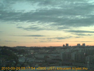 横浜市戸塚駅周辺から 東戸塚方面(北北東)を望む展望カメラの映像です。 左は現在の映像です。 下に並んでいるのは、 7日間に亘る日の出どき、昼間、夕暮れどきの写真(サムネイル)です。 それぞれ、日の出15分前、南中時、日没20分後の写真となっています。 各写真の下にはmpeg形式の動画へのリンクがあります。 それぞれ、日の出、南中、日没の前後1時間の画像です。 右欄にはその日24時間の動画へのリンクがあります。 この7日間以外は日付が一覧表示されています。 日付部分をクリックすると、 その日付から7日分が展開されて表示されます。