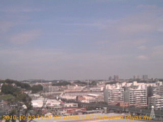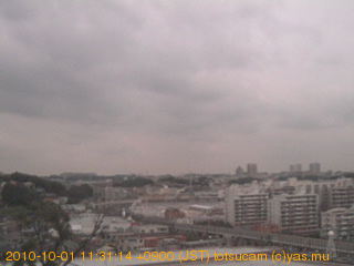 適度に曇った日の雲の動き (例: 2005-10-24) がとても楽しめます。 正面を横切っている高架は横須賀線下りです。 その下に横須賀線上り、東海道線、同貨物線が走っていますが、 高架に隠れていてよく見えません。 夜間は特に中央左寄りの車の動きがよく見えます。