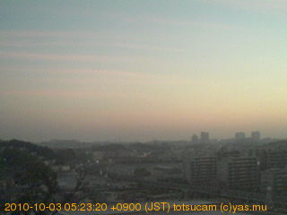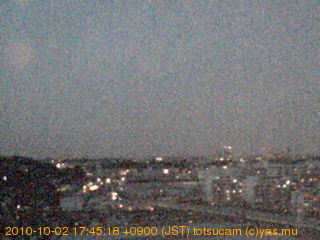 横浜市戸塚駅周辺から 東戸塚方面(北北東)を望む展望カメラの映像です。 左は現在の映像です。 下に並んでいるのは、 7日間に亘る日の出どき、昼間、夕暮れどきの写真(サムネイル)です。 それぞれ、日の出15分前、南中時、日没20分後の写真となっています。 各写真の下にはmpeg形式の動画へのリンクがあります。 それぞれ、日の出、南中、日没の前後1時間の画像です。 右欄にはその日24時間の動画へのリンクがあります。 この7日間以外は日付が一覧表示されています。 日付部分をクリックすると、 その日付から7日分が展開されて表示されます。